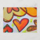 Peach, pink, and orange hearts stretch and reach for each other flowers in a garden bending to the sun. A green outline traces each heart. Pale yellow colour dots are like confetti between the hearts. The watercolor painting has a light layer of gold and pink on top. Customise this postcard with your personal text and images!