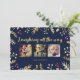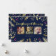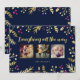 Two-sided Christmas holiday photo card featuring a beautiful navy blue with gold and red holly berry "Laughing all the way" design. Customize the front of this holiday greeting card with three of your favorite photos from the year. For best results, crop the photos to perfect squares before uploading. The backside of the card is printed with holiday message that reads: May your days be happy, your heart be light, your Christmas merry and the new year bright." Wording can be changed to suit your needs.