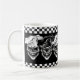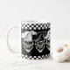Drink your morning poison in this cool and funny Laughing Skull Chef's coffee mug. This trio of hard-headed, yet happy chef skulls, really pop out against the black background, with black and white chequered panels. The customisation tool allows you to change the colour to one of your choice, and resize the images to fit personalised text. Available in different styles, this is a fun and unique gift for the executive chef, sous chef, pastry chef, home cook, line cook, or anyone with a passion for cooking! Visit www.zazzle.com/thechefshoppe to see more cool culinary themed skulls.