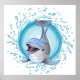 Laughing Dolphin in Splash Circle Poster