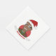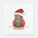 Napkins with an illustration of happy smiling African American man with Santa Claus' hat; with editable text template; Christmas holidays design with a red background