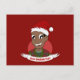 Postcard with an illustration of happy smiling African American man with Santa Claus' hat; with editable text template; Christmas holidays design with a red background