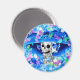 Laughing Skeleton Woman in Blue Bonnet on Blue Magnet