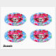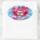 Laughing Skeleton Woman in Red Bonnet on Blue Oval Sticker