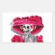 Laughing Skeleton Woman in Red Bonnet Rectangular Sticker