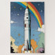 Launching space rocket retro Glossy Poster Jigsaw Puzzle