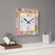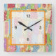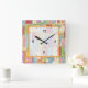10.75” x 10.75” acrylic wall clock with a fun image of colourful fabric swatches on a clothesline held by wooden clothes pins and an easy-to-read clock face on a white transparent square with an orange border; a perfect special touch for a child’s party or baby shower. See the entire Kids’ Corner Clock collection in the DECOR | Clocks section.
