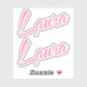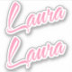 Laura name in cursive script font in pretty pink x2. Two copies of name.