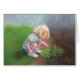 Image on this greeting card is taken from an oil painting of an adorable, little blonde headed girl, bending down and picking wildflowers from her front yard. Painting by R. Chaffin of Rycky Creations.