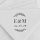 Custom-designed wedding save the date stamp featuring hand-drawn rustic laurel design. Personalize with bride and groom/couple's initials and wedding date. Perfect for rustic, boho, and greenery themed weddings.