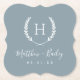 Laurel Crest Wedding Monogram | Dusty Blue Paper Coaster