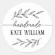 Simple made with love in beautifully script calligraphy with your name and wrapped in a laurel leaf wreath.