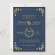 Laurel Leaf Typography Navy Gold Modern Wedding Invitation