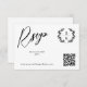 Elegant reply online RSVP card in a black and white typography design with a laurel wreath monogram, your QR code, and beautiful fonts. QR code wedding RSVP online card with a greenery monogram and beautiful fonts. Elegant RSVP card personalised with your website and QR code so your guests can RSVP online.