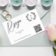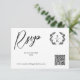Elegant reply online RSVP card in a black and white typography design with a laurel wreath monogram, your QR code, and beautiful fonts. QR code wedding RSVP online card with a greenery monogram and beautiful fonts. Elegant RSVP card personalised with your website and QR code so your guests can RSVP online.