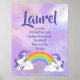 Purple Laurel Poster with rainbow, unicorns and customisable text. The adjectives start with each letter of the chosen name. You can customise the adjectives for this name or choose another name and corresponding adjectives. Or you can contact me to customise a poster with your name of choice. NOTE: when customising, the top name is written twice (once in purple and once with a lighter "shadow") to make it stand out.
