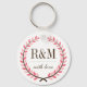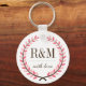 Laurel Wreath Monogram Wedding Keychain Pink White