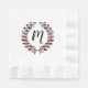 Laurel Wreath with custom Monogram Letter M, you can change or delete the letter, Red and White Stripes Elegant Party Napkins