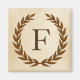 A delicate laurel wreath is layered over a parchment paper background in the classic Roman style. This design is personalised with the monogram "F" in a rich sienna tone.