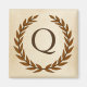 A delicate laurel wreath is layered over a parchment paper background in the classic Roman style. This design is personalised with the monogram "Q" in a rich sienna tone.