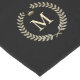 Glittery laurel wreath with a crown over simple black background. Customisable monogram in light gold tones.