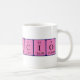 Laurencio spelled out as La U Re N C I O (Lanthanum Uranium Rhenium Nitrogen Carbon Iodine Oxygen) on a mug for the scientist in you.