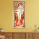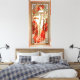 L'Automne by Alphonse Mucha celebrates Autumn with a lavish presentation of a young lady in an elaborate dress standing in front of an Art Nouveau styled chair carrying a basket of fruit.