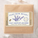 Pale ivory label with gold rim and blue dotted border. Vintage lavender illustration with bee. Made with Love and Gold Heart Logo,