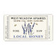 Pale ivory label with a blue dotted border and vintage lavender illustration with bees. Includes harvest season and contact info
