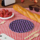 Lavender and Black Chequered Pattern Paper Plate