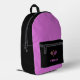Lavender and Black Modern Monogram Pickleball Printed Backpack