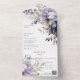 Your wedding is a celebration of love and commitment, and this All-in-One Wedding invitation with black and lavender peonies will set the perfect mood for your big day. Embrace the allure of this invitation and let your guests feel the excitement from the moment they open it. The All-in-One wedding invitations are both beautiful and practical by combining the wedding invitation with an easy to remove perforated RSVP postcard. They are also quick and easy to prepare for mailing. Simply address the invitation, fold the back flap and seal with the included clear stickers. Once your guests receive the pre-addressed invitation they simply tear off the perforated RSVP card and drop it in the mail. The addition of the QR code allows your guests to easily access your wedding website for information including reception details and dinner choices!