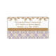 Elegant and beautiful french Moroccan tile inspired return address labels with a repeating lavender light purple hue and gold geometric pattern design and gold hued french baroque style floral flourish border. Our upscale and luxe look personalised address stickers are perfect for a formal Moroccan, Arabian Nights or Aladdin themed stationery set. Design © Chrissy H. Studios, LLC. All Rights Reserved