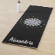 Enjoy this simplistic but beautiful black and white, lavender and sage mandala flower yoga mat every time you practice yoga or meditation.