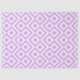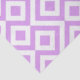 Stylish tissue paper features a lavender and white geometric pattern. Lavender diamonds with white borders are surrounded by light purple meanders which angle around them. White zigzags separate the winding pale purple paths and offset diamonds.
