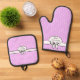 Lavender and White Polka Dots and Bow Personalised Oven Mitt & Pot Holder Set