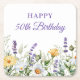 Lavender and Wildflowers Happy 50th Birthday Square Paper Coaster