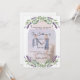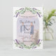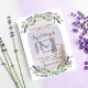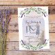 A white background decorated with lavender flowers, eucalyptus greenery and an arch frame for your photo. Personalise and your names and details.