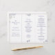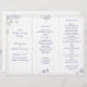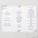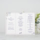 Tri-fold, artistic lavender flowers wedding program template. Little lavender hydrangea petals along the border of this one-sided ceremony program to be folded accordion style, into thirds after purchase. Customise all three areas of example text as needed and make a paper selection.