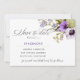 Calligraphy graces the design to set it apart simply, but effectively. It is feminine and stylish, with real flowers in a palette of cream white, purple , and palest lavender. The date is printed in purple, but the colour can be customised inside the design tool; all other text is black.