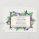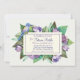 A charming invitation featuring crocus flowers, in shades of lavender, overlaid with a framed panel which holds your party's information. A blue bird rests on the corner of the panel. The card is easy to customise with your wording, font, font colour, paper shape options and choice of six paper types.