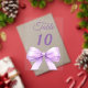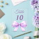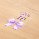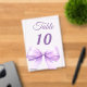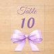 Personalize and your table numbers one by one. A clear background decorated with a large lavender colored bow.
