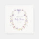 Our baby shower paper napkins feature a lavender watercolor bow and wildflower wreath - a stunning way to decorate a table at your baby shower or event.