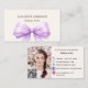 Lavender, blush purple coloured background, decorated with a large pink bow. Add your name, photo and the details.