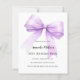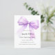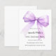 A white background, decorated with a lavender colored large bow. Personalize and add a name and party details.