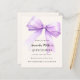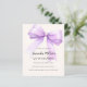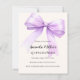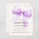 A soft beige, cream coloured background, decorated with a large lavender, violet, purple coloured bow. Personalise and add a name and party details.