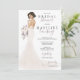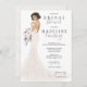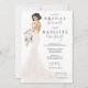 Elegant bridal shower invitation features bride to be in a lace wedding gown and carrying lavender and purple flower bouquet. Choose hair colour and skin tone to look like your bride to be. Back of invitation features white lace and additional text info can be added if needed.
