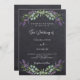 Chackboard background decorated with lavender flowers and eucalyptus greenery. Personalise and your names and details.