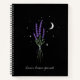 A spray of lavender against a starry night and crescent moon. Lavender has been used for ages to improve sleep. This could make a lovely Dream Journal or a place for your night thoughts.