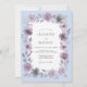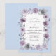 Soft watercolor roses and delicate blossoms in shades of lavender and mauve create a romantic arrangement. Set against a serene pale blue backdrop, the design features muted grey-green foliage. This aesthetic evokes a sense of timeless elegance and springtime freshness for a romantic ceremony.